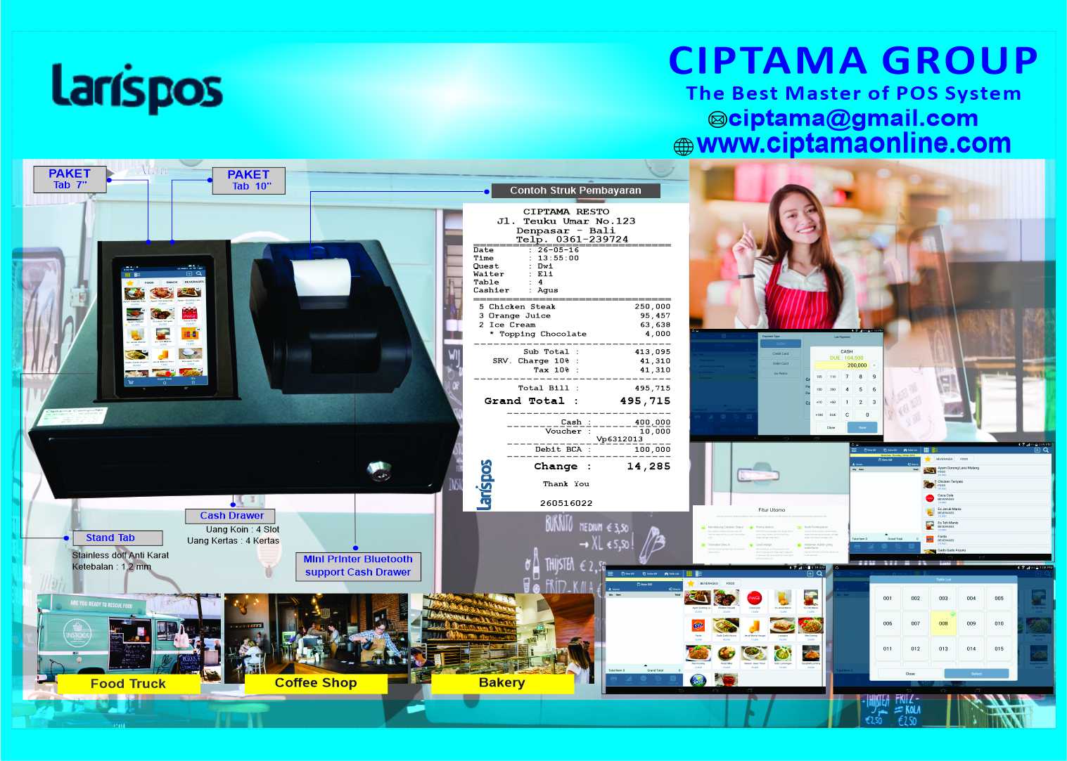 Ciptama Computer adalah ahlinya produk Bermutu, Berkwalitas & Terjangkau untuk Program Kasir & Perangkat kasir, dan telah berdiri sejak Tahun 1993