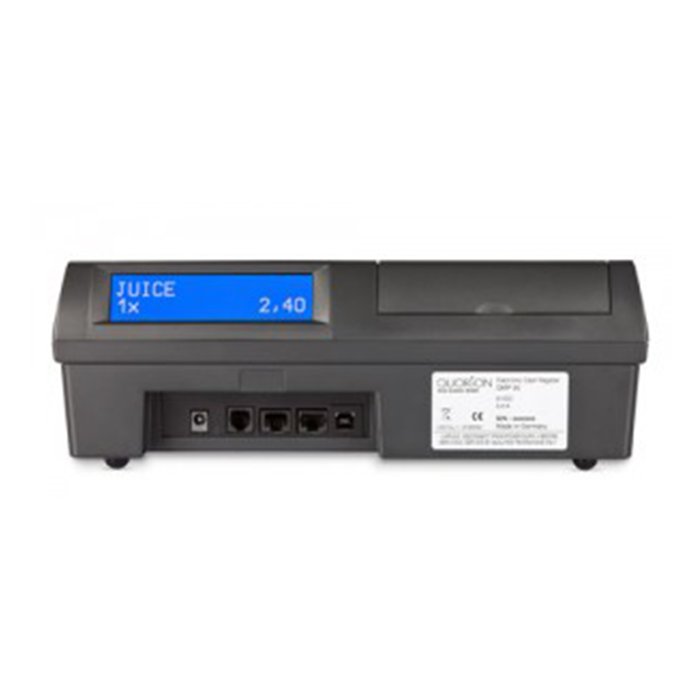 The QMP 50 comes with fast Easy-Load printer, one or two stations, graphical LCD displays, two serial ports for peripherals like scanner/scale, one USB port for comfortable PC programming as well as reporting and a cash drawer port.