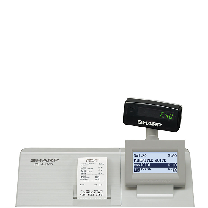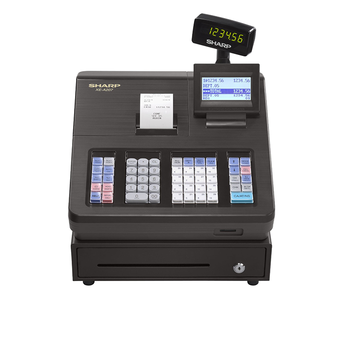 {slider Feature|icon}Type terbaru dari Cash Register Sharp ini, berbeda dengan type Sharp sebelumnya. Perbedaan yang menonjol terletak pada cara pe-mrograman-nya, dibanding dengan type XE-A203 cara programnya berbeda total. Sharp xe-A207 ini tidak menggunakan kunci sperti type xe-a203, semua otorisasi mulai Operator sampai fungsi master menggunakan system Password. Bahkan pada masing-masing kasir pun bisa diberikan password supaya tidak tergabung antara kasir satu dengan kasir lainnya.